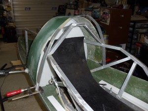 Après livraison de la coque et du chassis par le LP le 16.12.11, les "grosses opérations" commencent sur la carrosserie. Première étape, fixer le chassis sur la coque inférieure, puis positionner et adapter les ancrages du harnais, mise en forme et en place d'une cloison de séparation entre la partie "moteur batterie" et le siège du pilote, découpe de la "coque supérieure" en plusieurs parties (arrière, arceau central et "cockpit"), réflexion et découpe des vitrages, principes d'assemblages des différentes parties. Voilà quels ont été les objectifs de cette première semaine de "repos"...
